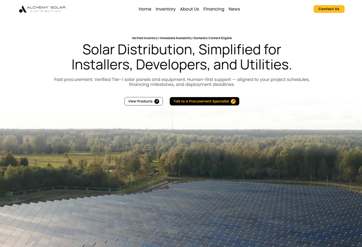 Together, these updates positioned Alchemy Solar Distribution as a professional, growth-ready partner for solar projects nationwide.