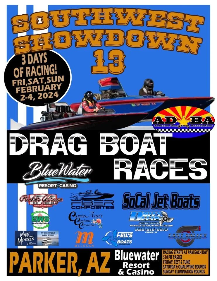Celebrate the drag boat races as the 1st race for 2024 as they scream across the water for 3 days in Parker! Get your name on our listeners lips and SPONSOR THE RADIO ADS!!!